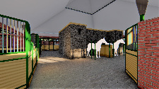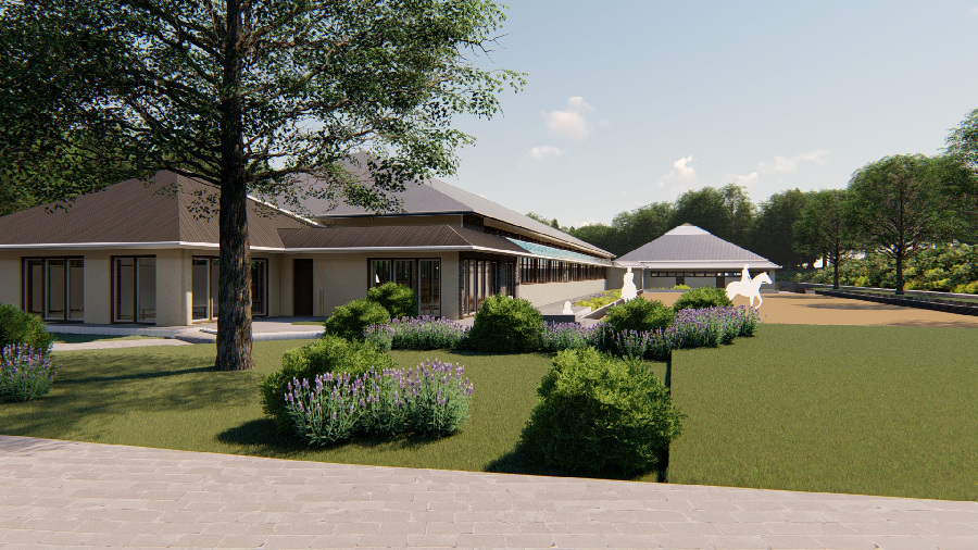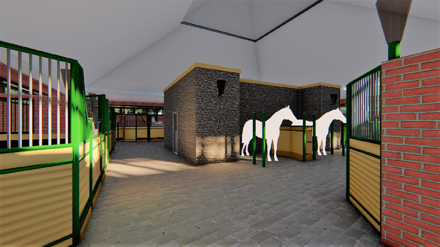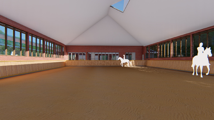 The Duntisbourne House complex was designed in accordance with the concept of living with horses in England. A stable building, a 20x60m riding arena with an attached lounge, an equally large riding arena, and the associated infrastructure were designed to complement the existing house.