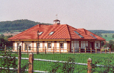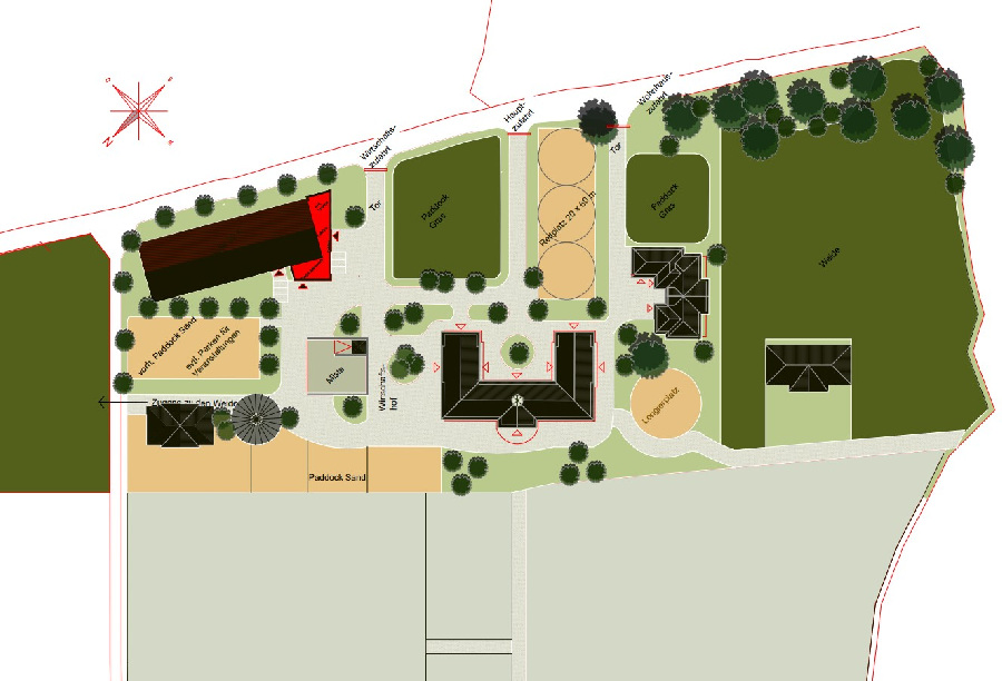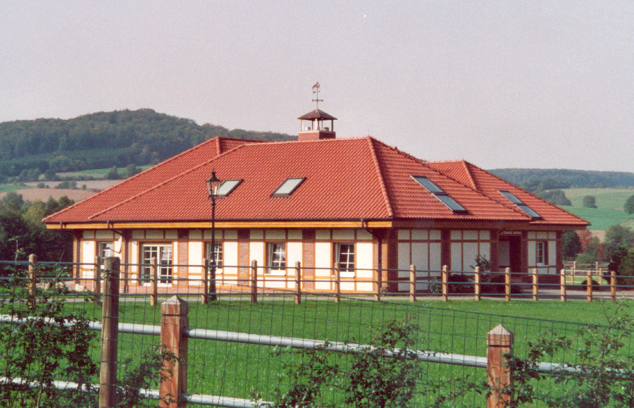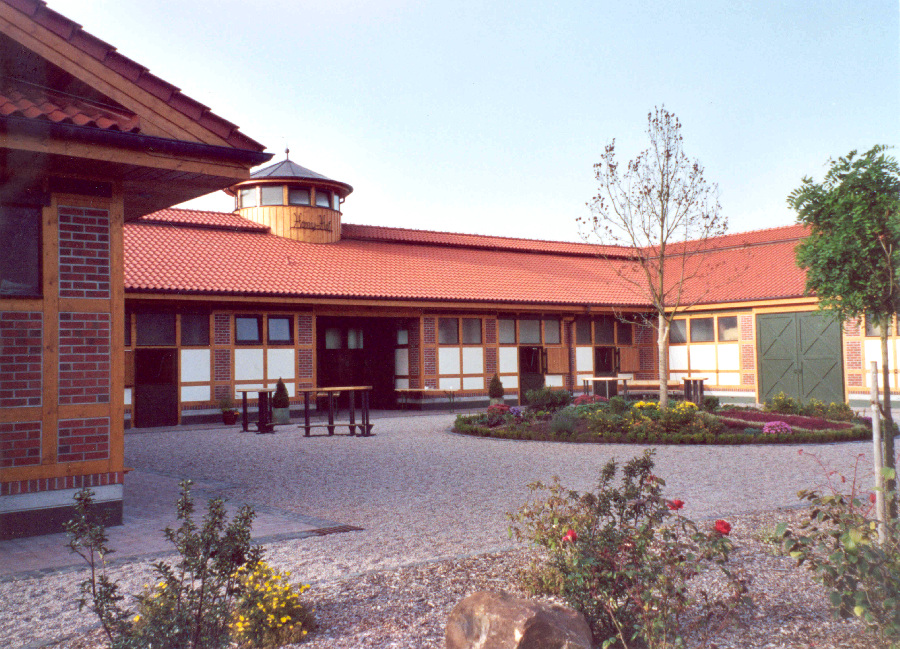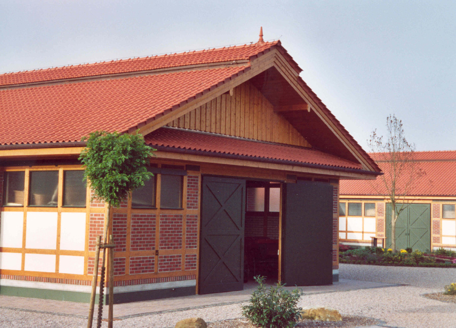 The Höny Hof stud farm in Hesse is architecturally one of the most modern in German thoroughbred breeding and blends perfectly into its surroundings with detailed timber-framed elements. A traditional site of horse racing.