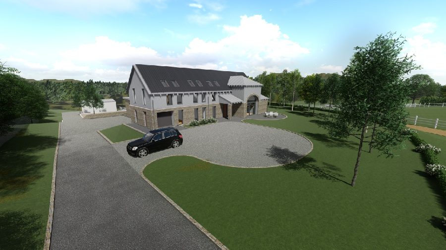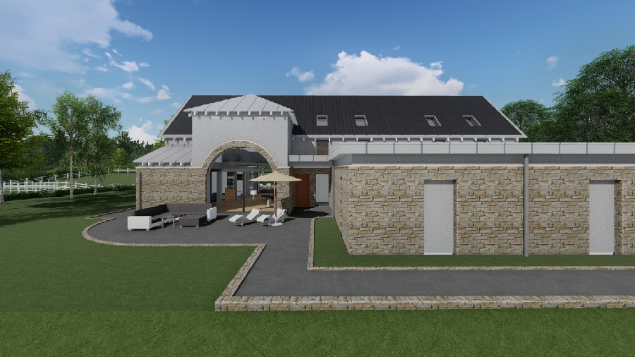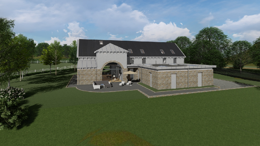 Renovation of a farm complex with integrated stables and development of a modern living concept.