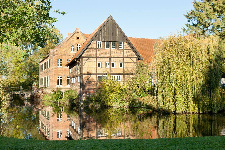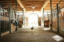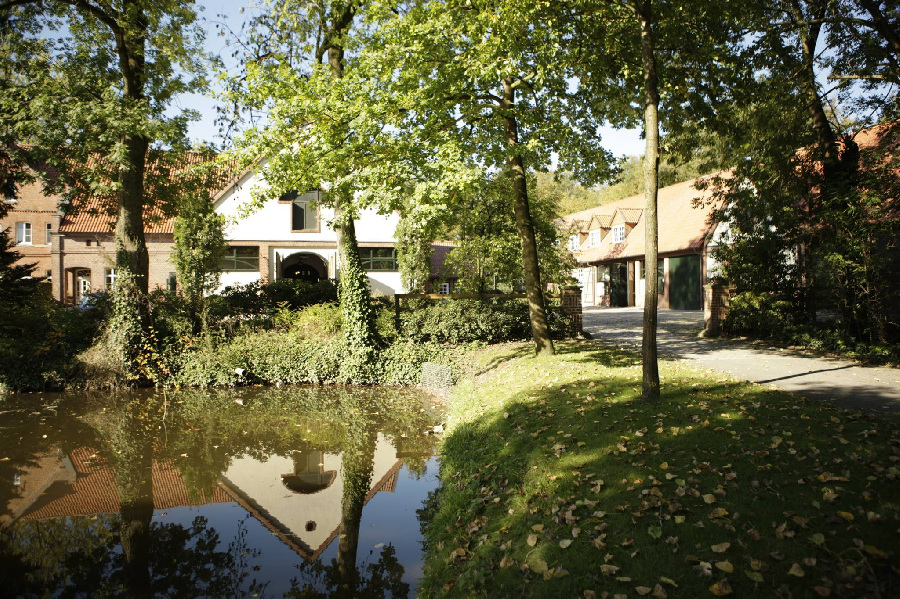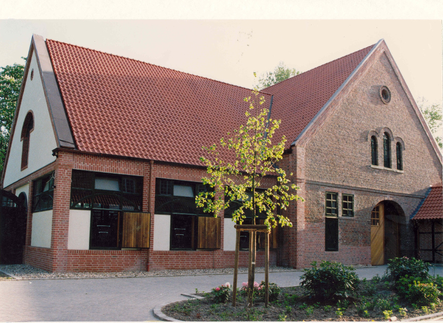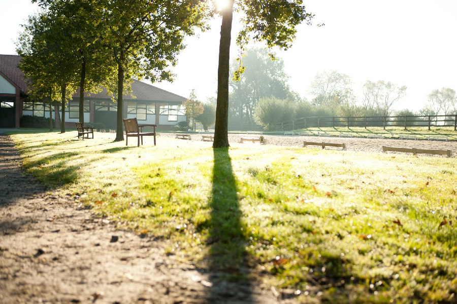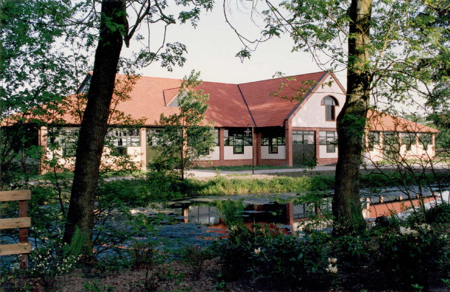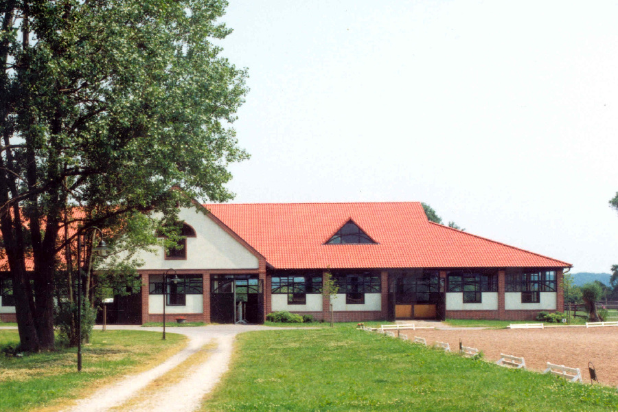 The existing farm was completely remodeled to accommodate approximately 50 horses. A riding arena measuring 20 x 60 meters provides optimal conditions for training dressage horses. The facility blends seamlessly into the typical landscape of the Münsterland region.