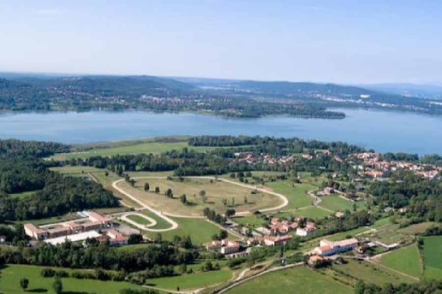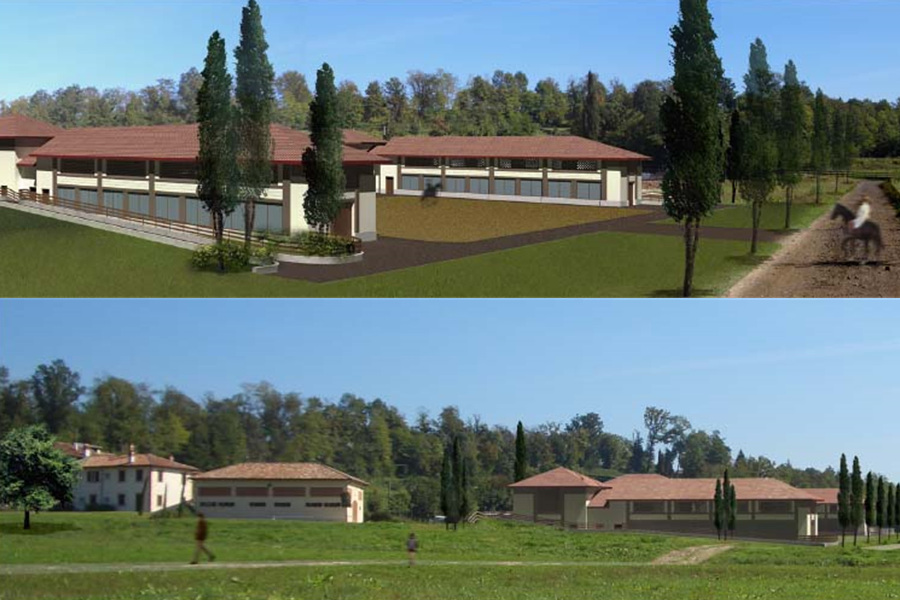 In Varese, in northern Italy, a new, high-quality training center for Thoroughbreds has been built, featuring a 1,200-meter-long and 8-meter-wide training track. A two-story stable complex for 124 horses, complete with all necessary ancillary facilities, was designed and positioned on the hillside so that both floors are accessible at ground level.