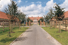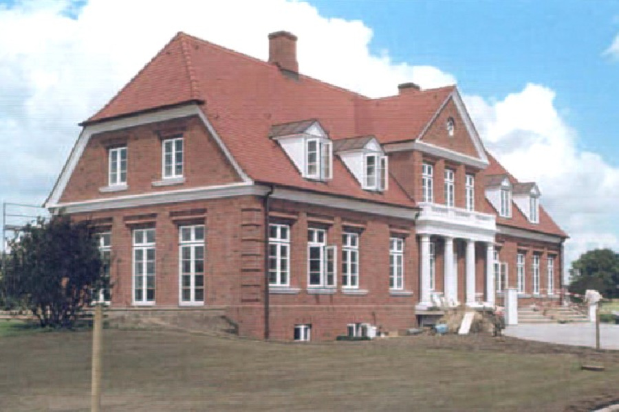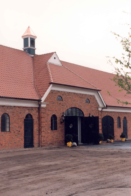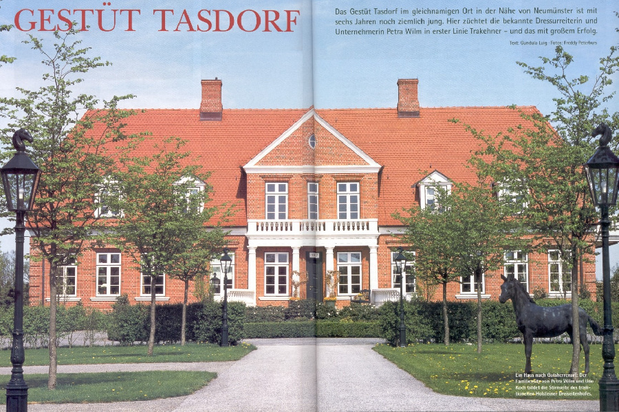 A three-sided courtyard stud farm was built in the North German manor house style, and it is one of the finest addresses in the north. The Wilm family runs a successful Trakehner and sport horse breeding operation here, creating a combined stud farm and training facility.