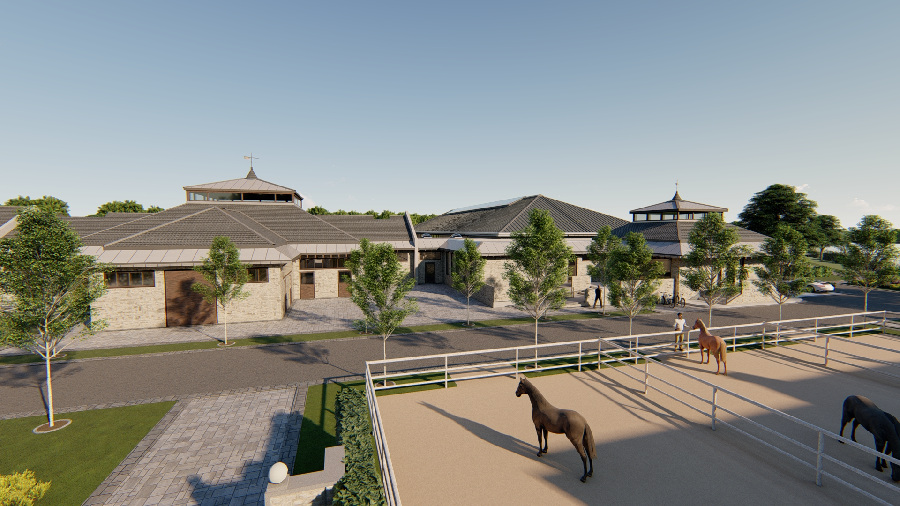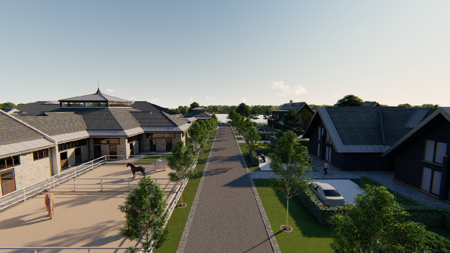 The Riding School comprises five apartment buildings, each with three units, which riders can rent for a specified period. Riders' own horses are housed in the modern stable complex. The 20x60 meter indoor riding arena is directly connected to the stable complex. Adjacent riding arenas allow riders to practice dressage and show jumping individually.